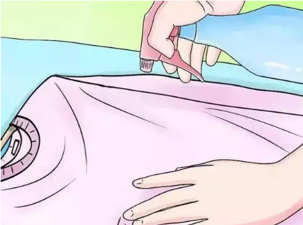 在褶皺處,稍微弄濕就好。把褶皺處拉平。你可在辦公桌上備著一瓶柔順劑,在進(jìn)