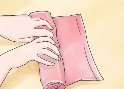 只需攤開衣服,像卷煎餅一樣緊緊地卷起衣服。卷衣服時(shí)要特別留意,確保卷得平