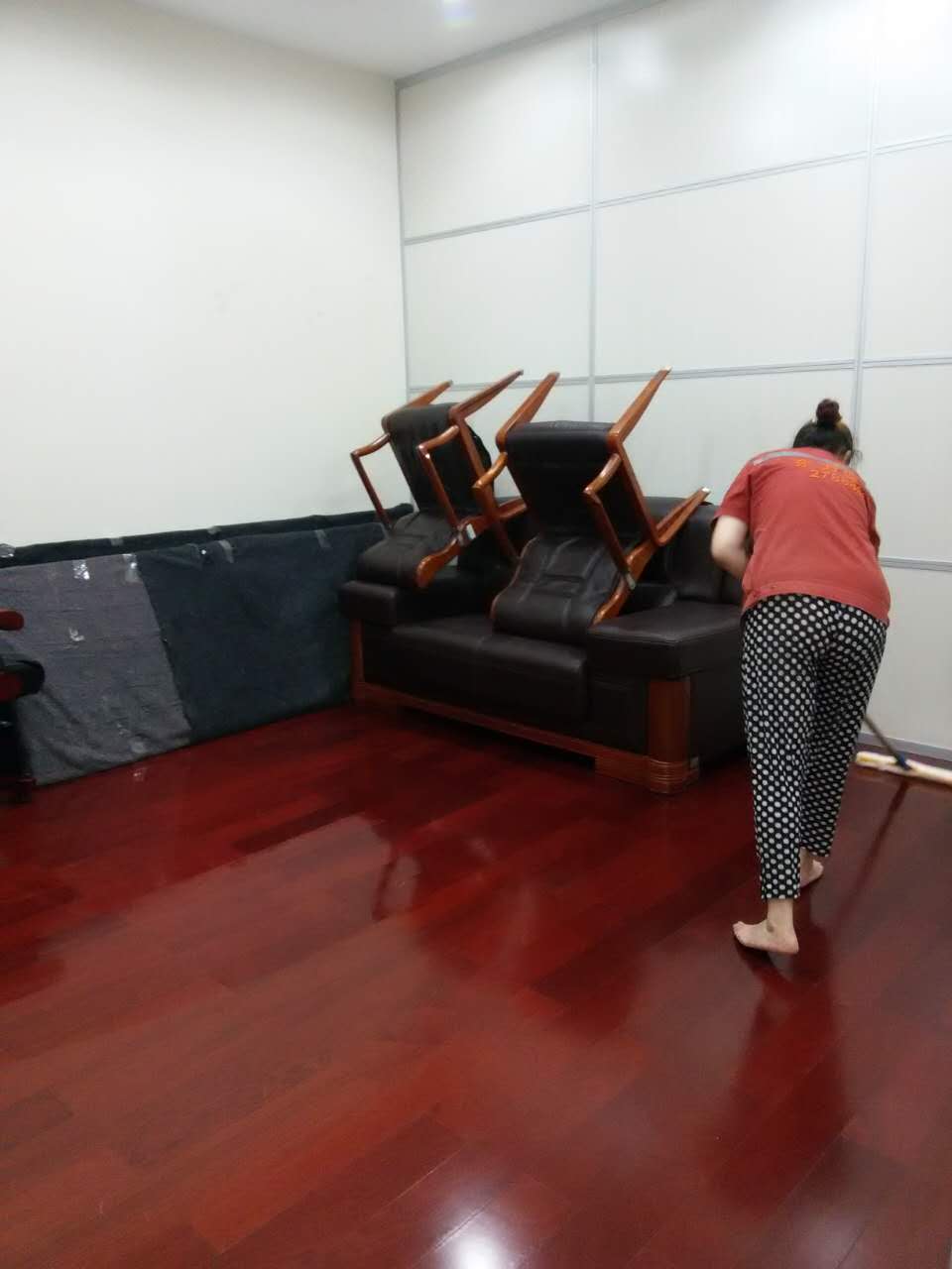 【東方家政】漢中某小區(qū)家庭木地板打蠟