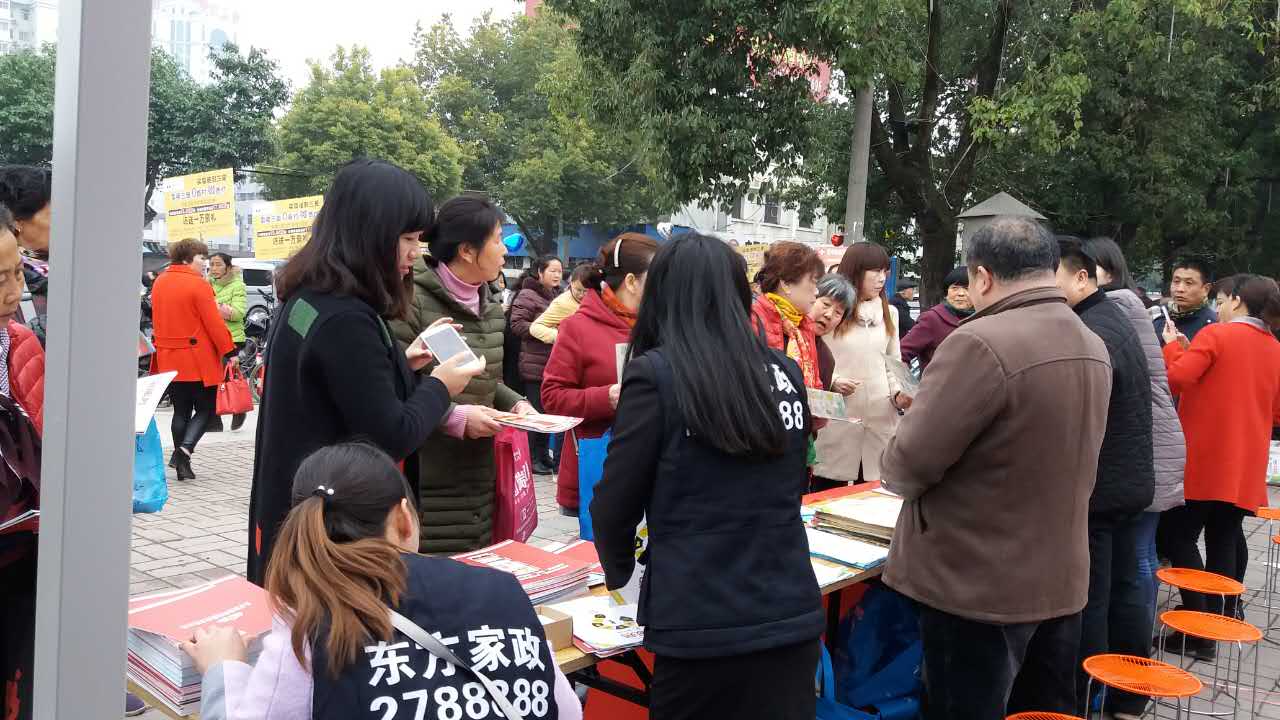 3.17日上午由虎頭橋社區(qū)舉辦“四社聯(lián)動”法治、家政、健康宣傳活動在漢中中心廣場展開,東方家政公司非常榮幸的參加了此次活動。