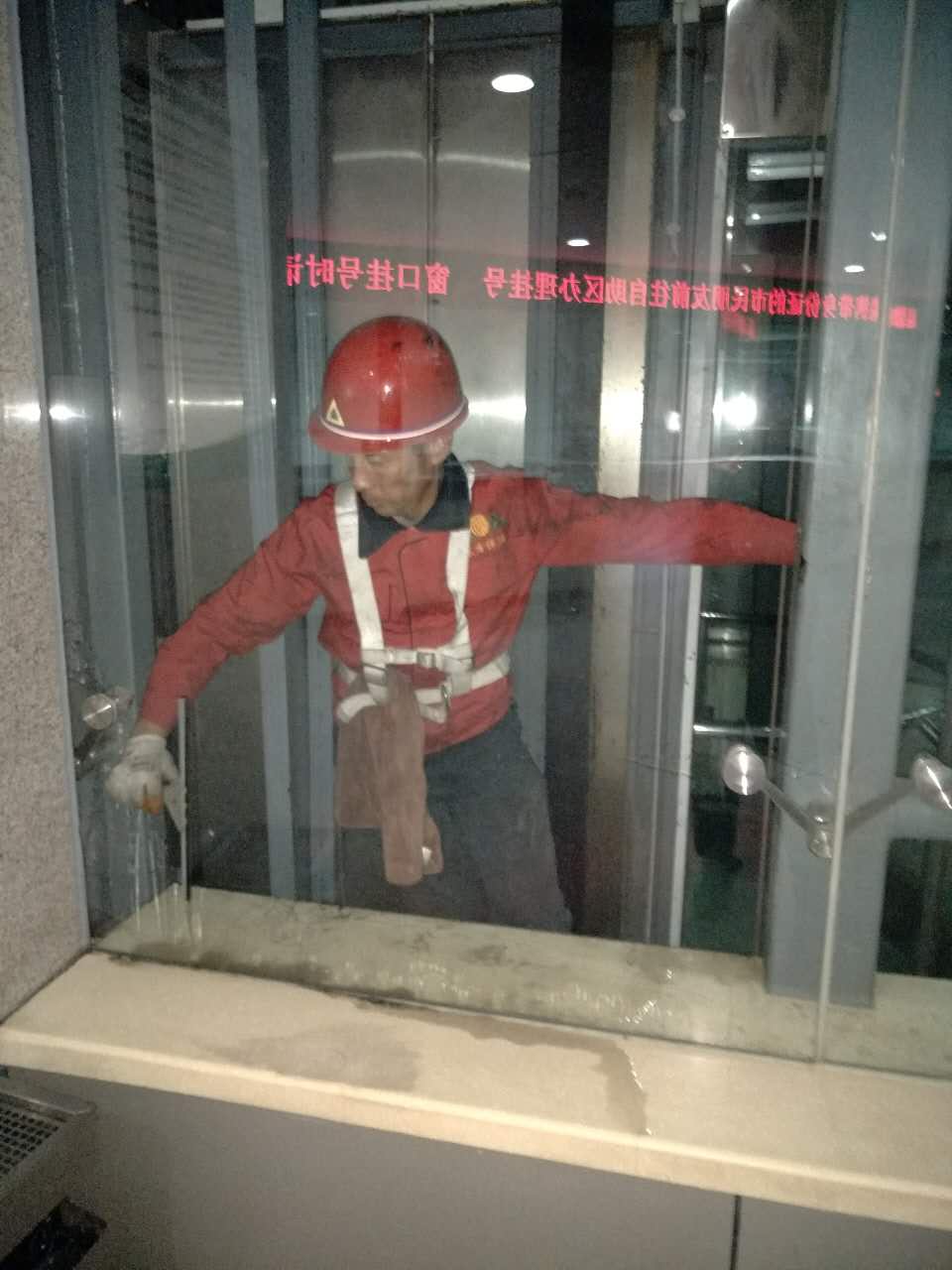 【東方家政】漢中市某醫(yī)院觀光電梯清洗玻璃