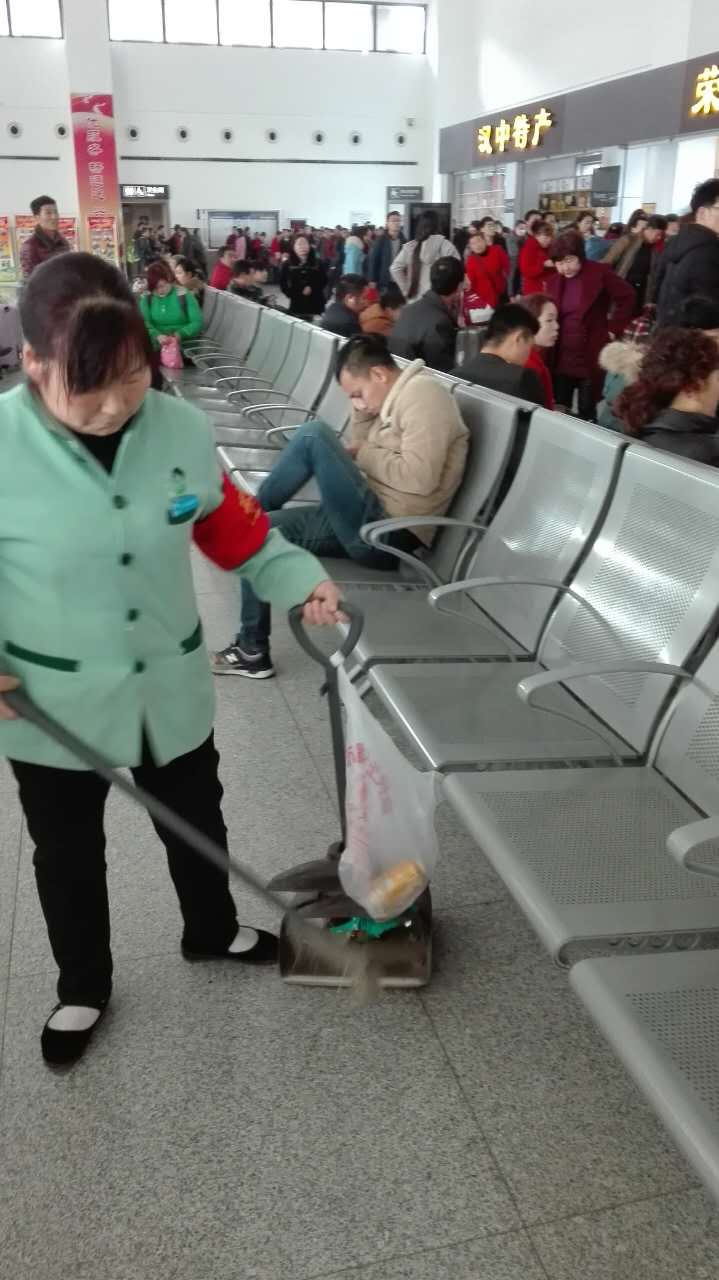 又到了一年一度的春節(jié)返程高峰期,為了給返程人員等候車次創(chuàng)造舒適環(huán)境,東方家政火車站保潔員不辭辛勞,默默的用自己的勞動凈化每一個地方。